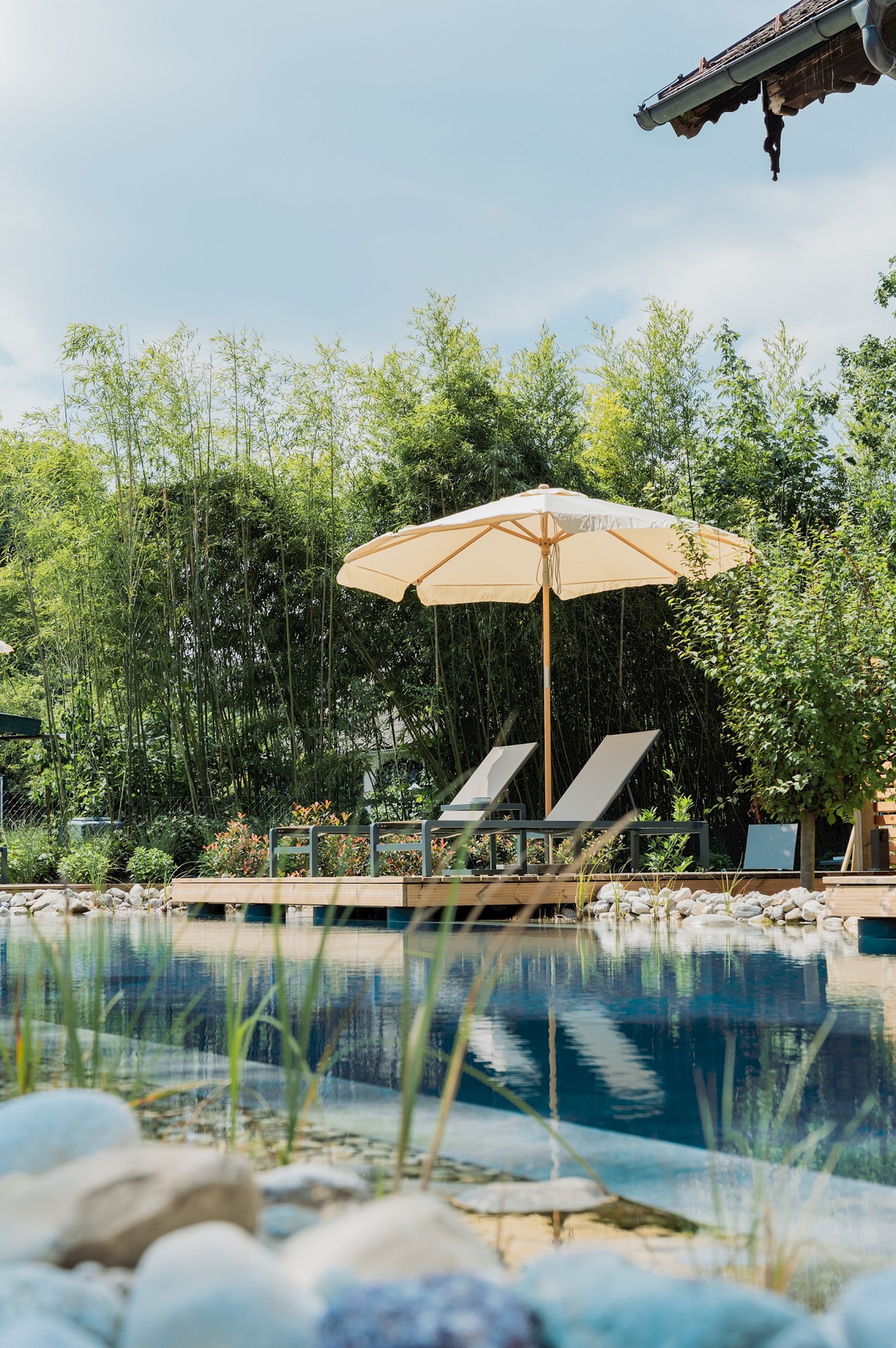 Bei unserem Nebengebäude „Kramerbauer“ steht Ihnen ab sofort ein ökologischer NATURPOOL zur Verfügung. 15x6 Meter Badevergnügen & Erholungszone.